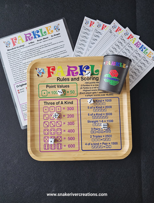 Farkle Game Set with Rules and Score Cards – Optional Personalized Dice Cup Available