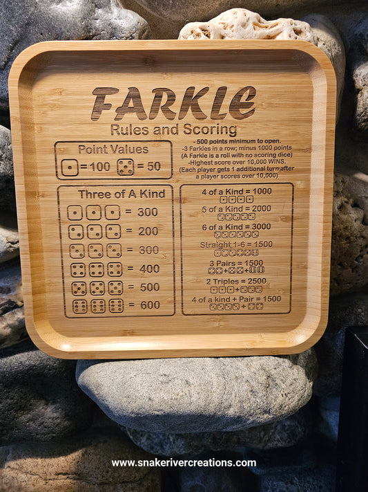 12" Farkle Game Board -Choice of Round or Square- Includes Dice, Score Cards and Laminated Instructions