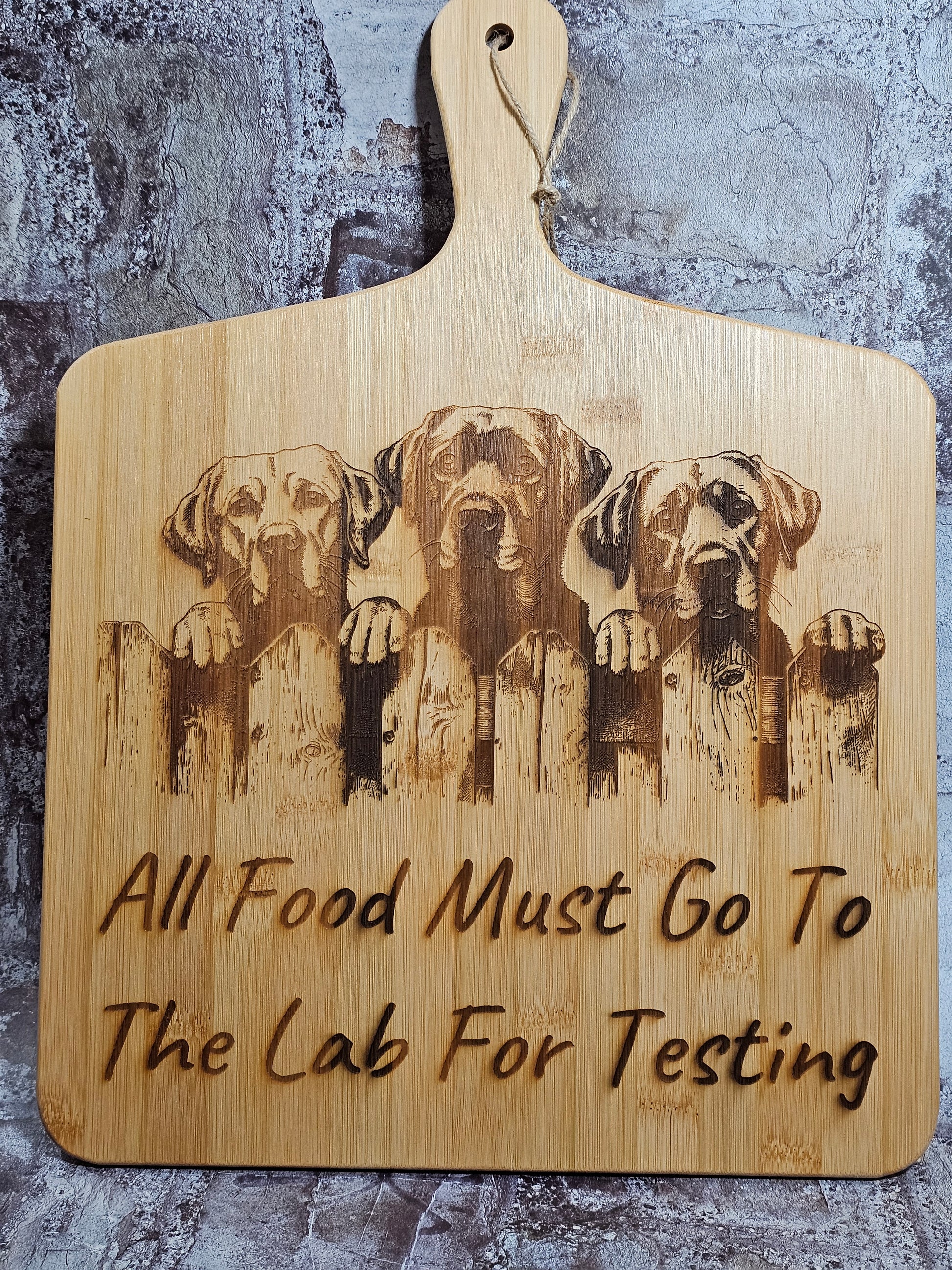 Large Engraved Bamboo Board – “All Food Must Go To The Lab For Testing” | Labrador Kitchen Décor