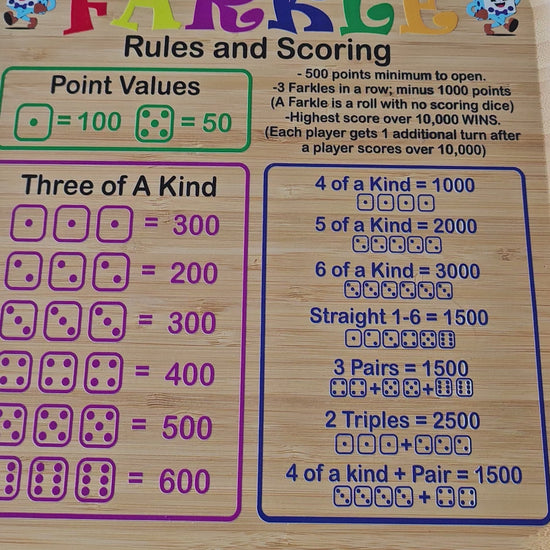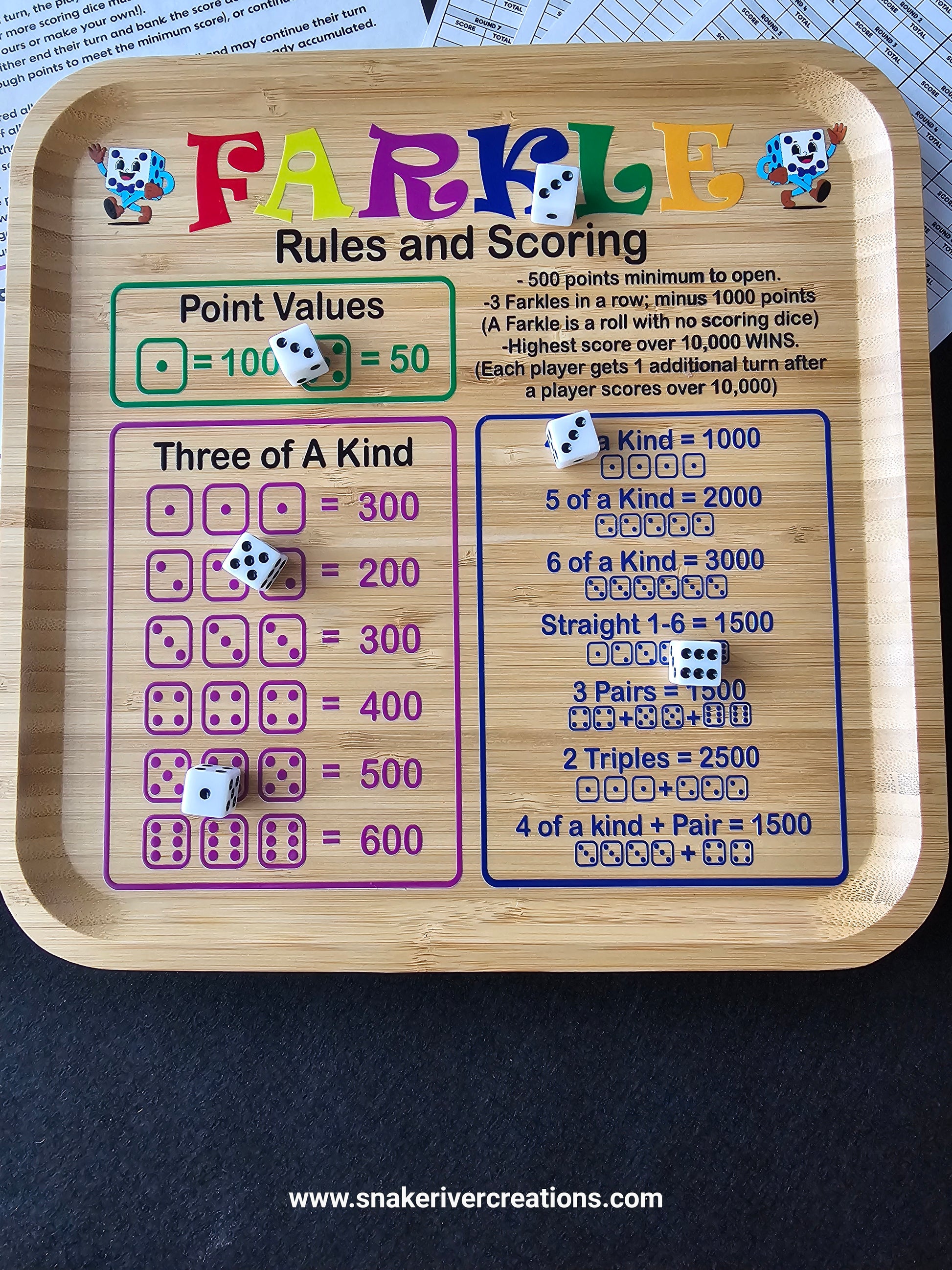✔️ Farkle Rules & Score Cards – Easy-to-read layout for quick reference during play