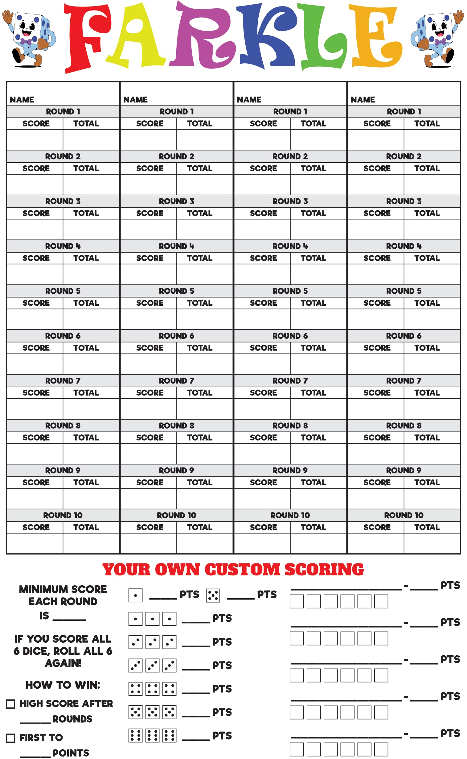 Farkle Scorecard Download